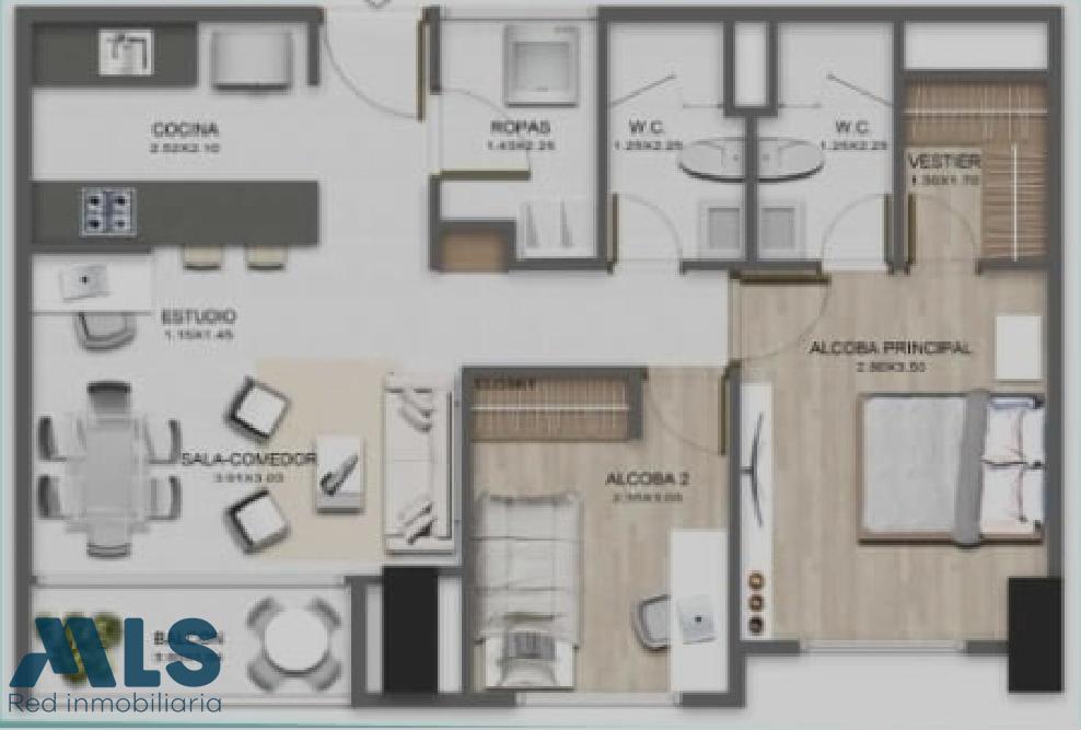 Disfruta de un apartamento tranquilo, fresco, rodeado de arboles y parques lineales; con un diseño que brinda iluminación ventilación natural y mayor independencia. Amplios espacios, ya que cuenta con 60.95 m2 y excelente distribución, 2 habitaciones, la principal con baño, vestier, la otra con closet, 1 baño adicional, salón comedor, Balcón, cocina abierta y zona de ropas independiente. Full acabados, modernos y de buen gusto. Cuenta además con parqueadero cubierto y cuarto útil. Unidad con piscina climatizada para adultos y niños, sauna, turco, gimnasio cubierto y externo, cancha polideportiva, salón de juegos, juegos infantiles, salón social, coworking, zona de mascotas, parqueadero de visitantes y portería 24h. Ubicación estratégica, cerca a centros comerciales, bancos, supermercados, colegios; fáciles vías de acceso y transporte público.