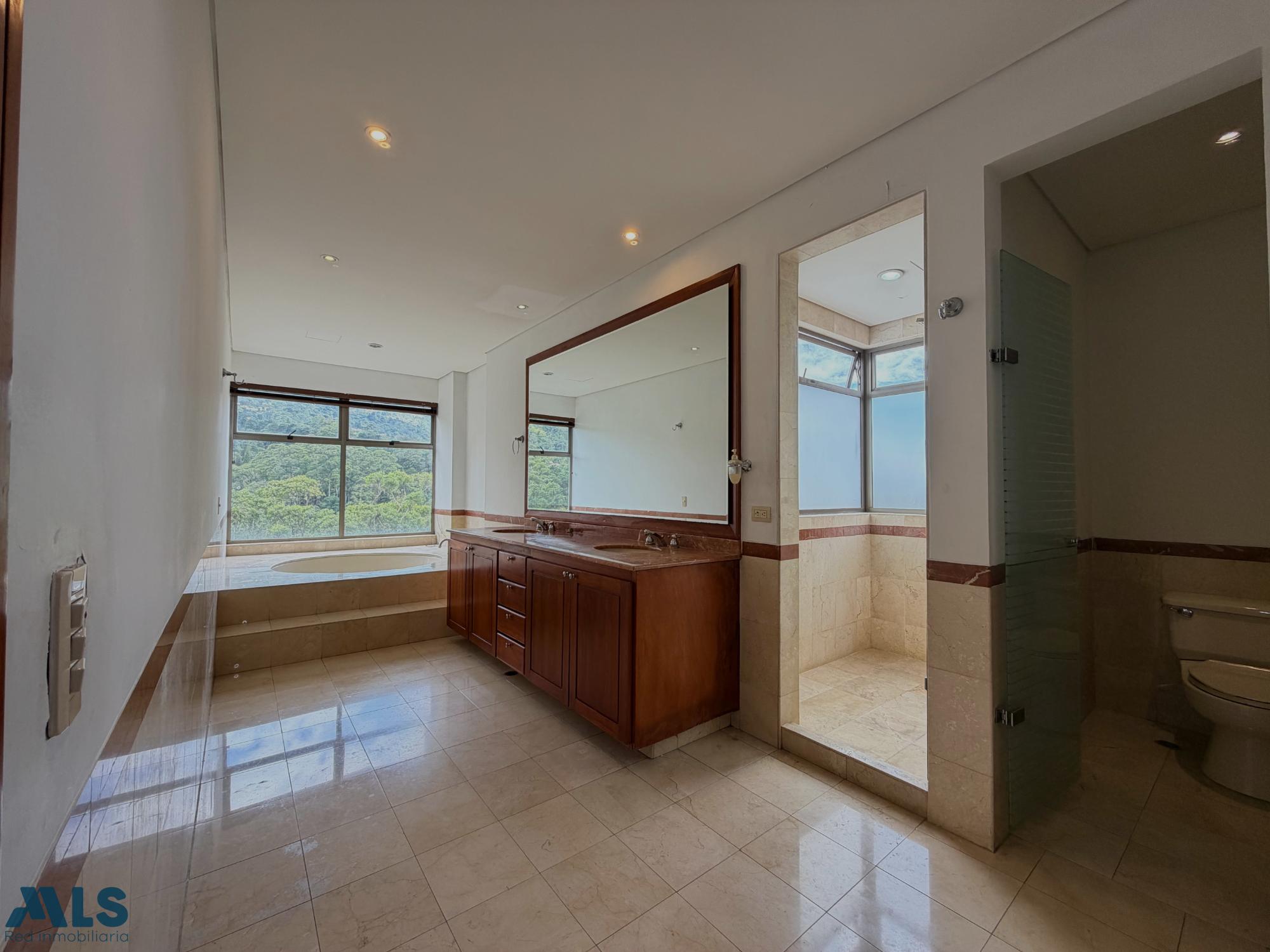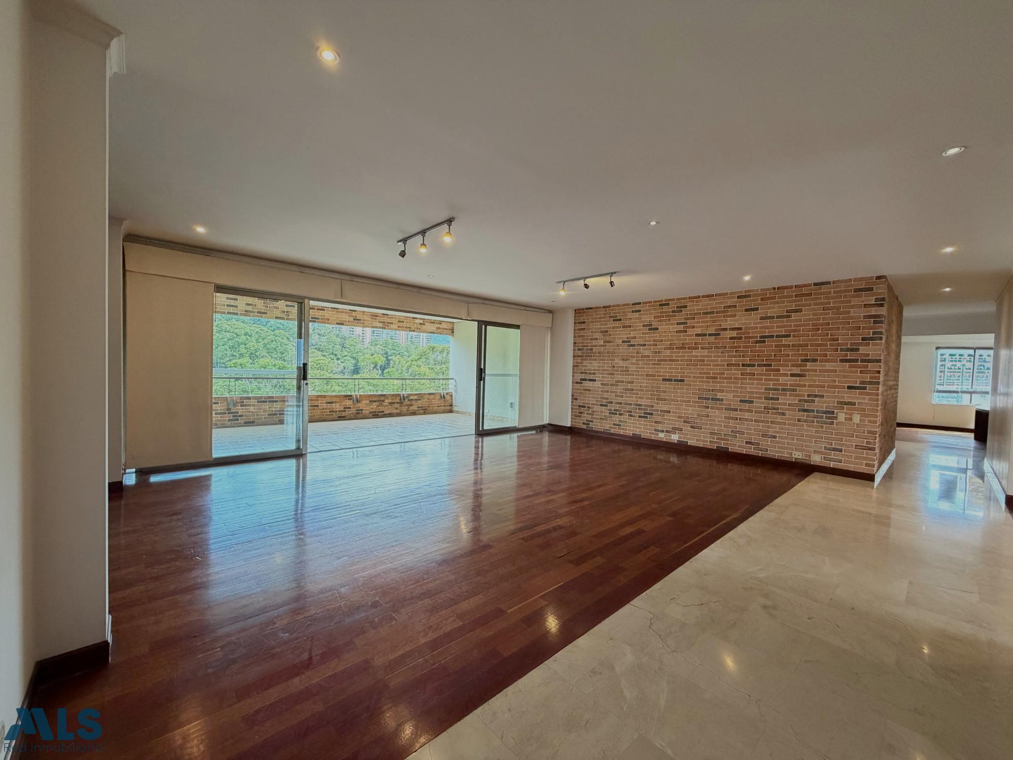 Vive en uno de los sectores más exclusivos de El Poblado, en zona residencial tranquila. Apartamento de 316 m² con excelente iluminación y ventilación natural. Cuenta con 3 habitaciones con vestier + servicio, 4.5 baños en total, sala doble en dos ambientes con mueble empotrado, comedor independiente y biblioteca con opción de cuarta alcoba. Cocina integral con isla, campana, espacio para lavaplatos y amplia alacena. Zona de ropas independiente, alcoba de servicio, closet de linos y calentador de gas nuevo. Dispone de 2 balcones con vista a Las Palmas y a Medellín. Acabados en mármol, madera y baldosa. Incluye 2 parqueaderos paralelos y cuarto útil. Urbanización cerrada con piscina, gimnasio, sauna, salón social, juegos infantiles, sendero ecológico y vigilancia 24 horas. Ubicación estratégica cerca de todo