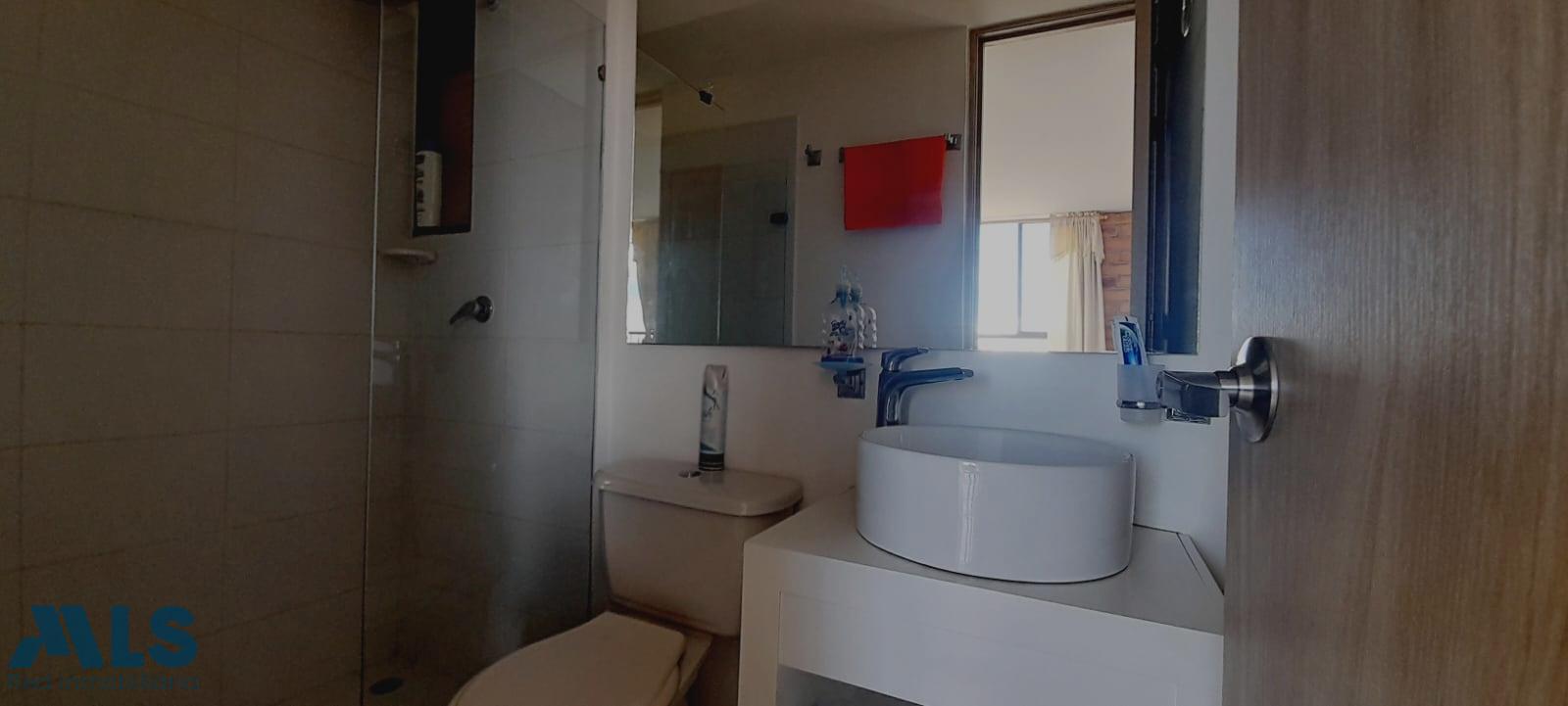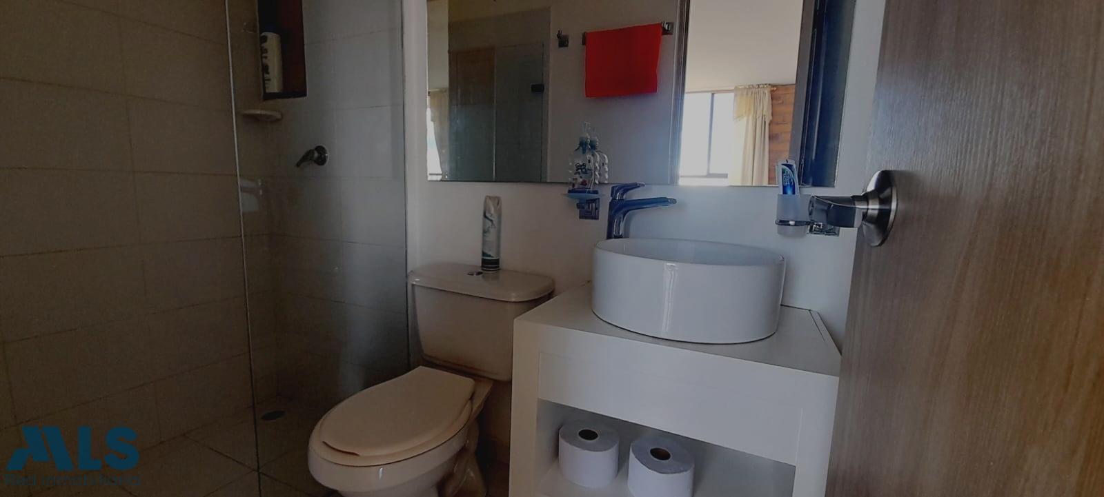 Apartamento para venta en sector tranvía de Rionegro, este inmueble de cincuenta y cuatro metros cuadrados aproximadamente, cuenta con dos habitaciones una con Vestier, y baño privado, otra con closet, una de ellas, dos baños completos uno con lavamanos de sobreponer con mesón y mueble, espejos y división a la ducha en vidrio templado, zona de ropas, cocina integral con mesón en quarzo campana extractora y cubierta a gas, sala comedor amplia y balcón, con calentador de paso a gas, un parqueadero y un cuarto útil, cercano a colegios, transporte publico y vías principales.