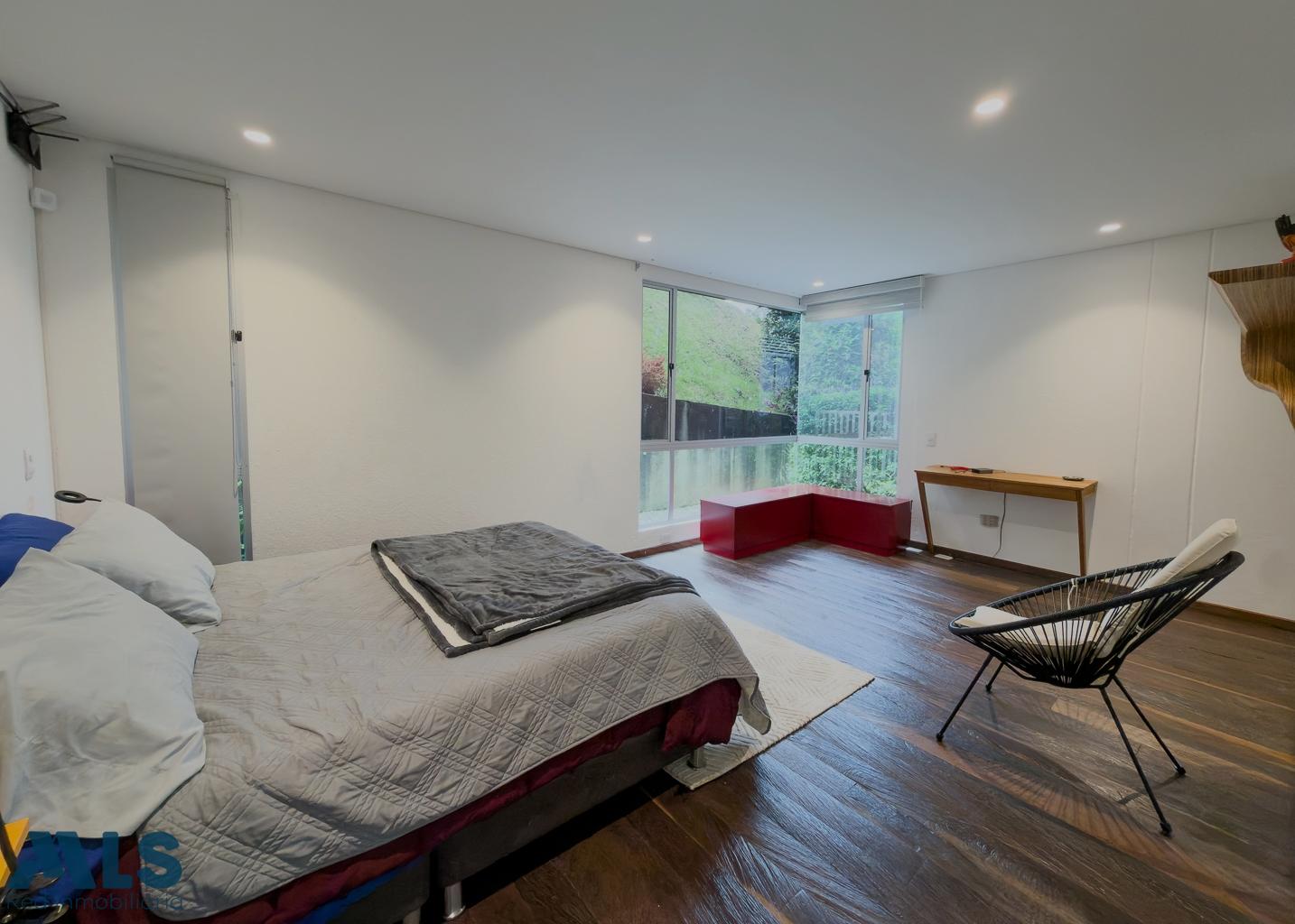 Esta unidad residencial tiene un concepto de construcción exclusivo el cual está conformado por 14 chalets, tres apartamentos por piso; te permite estar en constante contacto con la naturaleza, cerca de servicios como Colegios, restaurantes, iglesias, entro otros. Este hermoso apartamento consta de 2 alcobas, con baños privado, baño social, salón comedor, espectacular balcón con vista a zona verde, jardín, parqueadero doble lineal y un generoso cuarto de hobbies.
