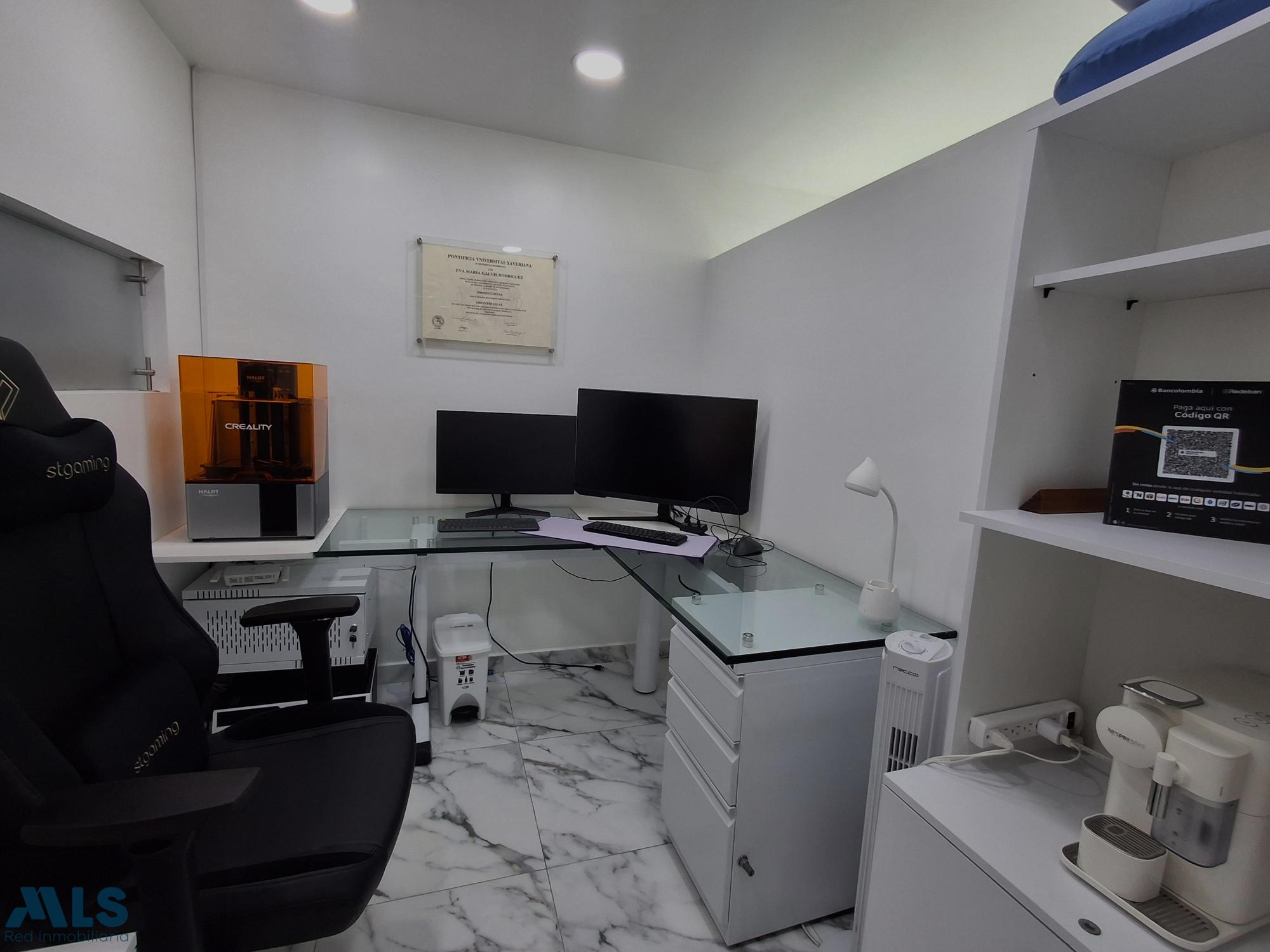 Gran oportunidad, clinica odontológica en venta, se entrega dotada, consta de 3 unidades de trabajo, compresor, aire acondicionado, recepción, parqueadero sencillo, el área del inmueble es de 46.29 M2, mas un área de Mezanine de aproximado de 34 M2.